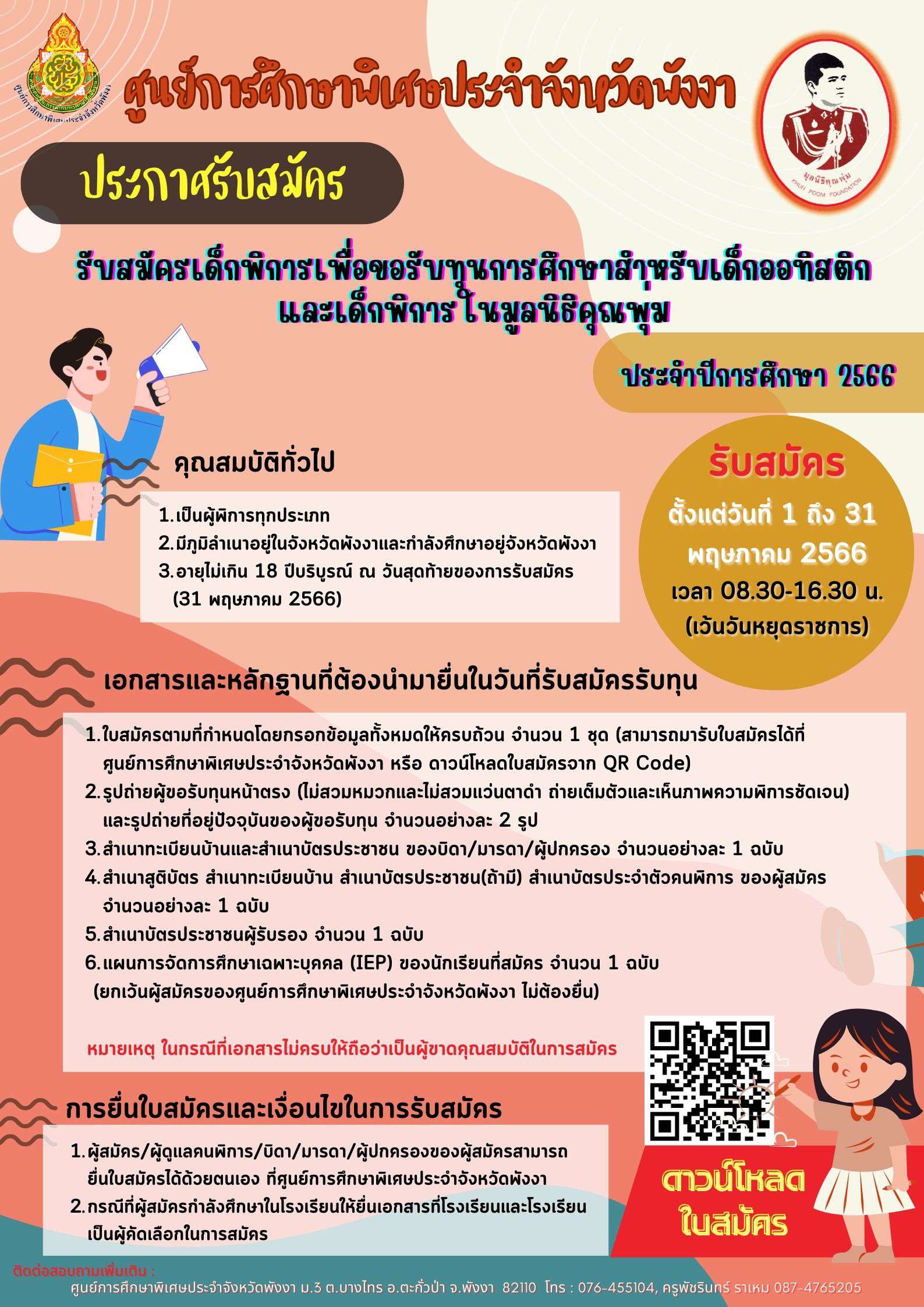 ประกาศรับสมัครเด็กพิการเพื่อขอรับทุนการศึกษาในมูลนิธิคุณพุ่ม ปีการศึกษา 2566