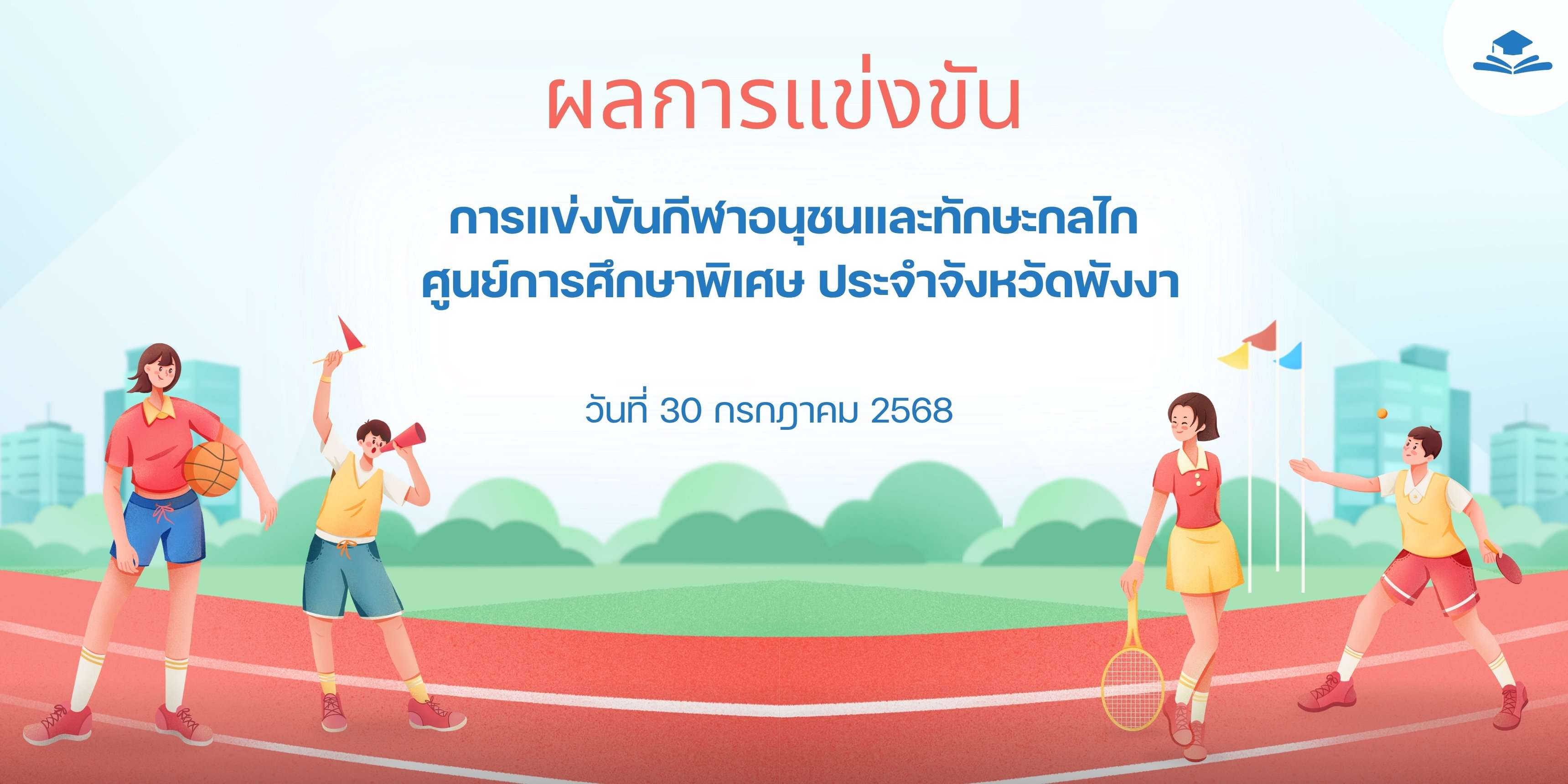 ผลการแข่งขันกีฬาอนุชนและทักษะกลไก ศูนย์การศึกษาพิเศษ ประจำจังหวัดพังงา ประจำปีการศึกษา ๒๕๖๘ วันพุธที่ ๓๐ กรกฎาคม ๒๕๖๘