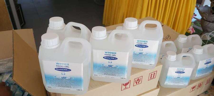 คุณรณรงค์ สีมารัตนกุลและปลัดอาวุโสตะกั่วป่าและผจก.ร้าน ส.เจริญแอร์ ปันรักปันสุขด้วยการมอบเจลแอลกอฮอร์