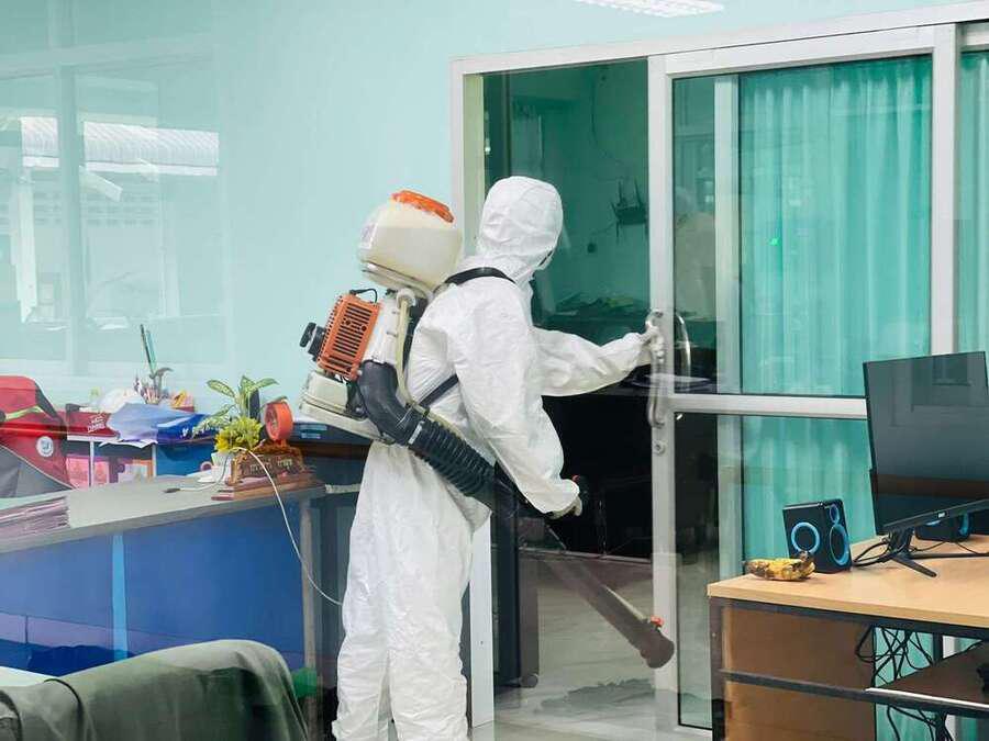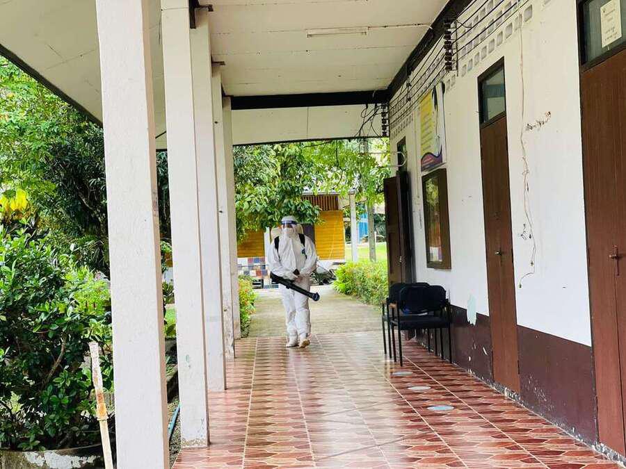 ฉีดพ่นน้ำยาฆ่าเชื้อ Covid-19เตรียมความพร้อมก่อนเปิดภาคเรียน