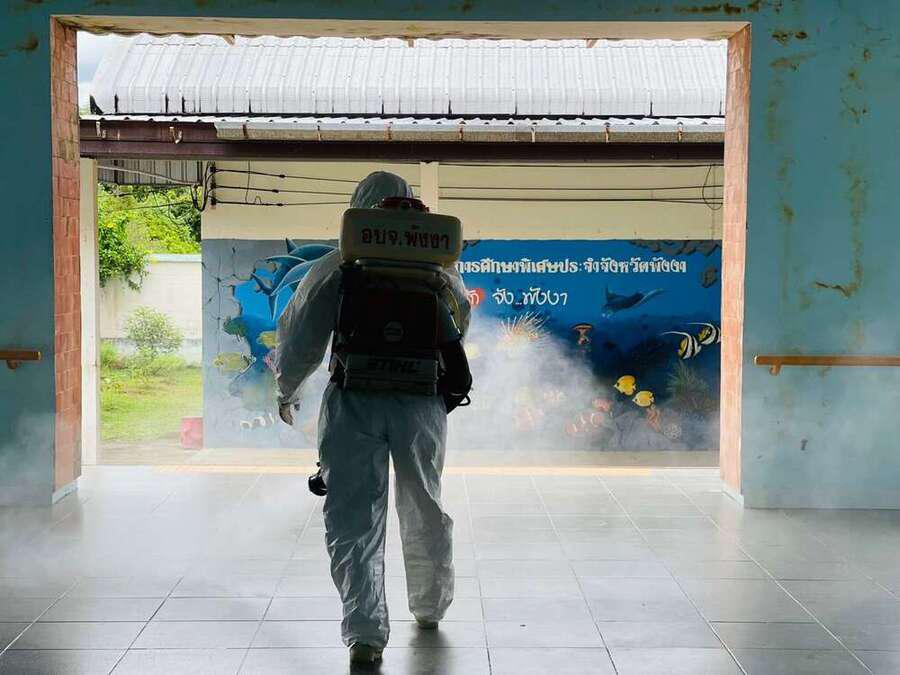 วันพฤหัสบดี ที่ 11 พฤศจิกายน 2564 เจ้าหน้าที่องค์การบริหารส่วนจังหวัดพังงา ได้ทำการฉีดพ่นน้ำยาฆ่าเชื้อ Covid-19 ตามห้องเรียน อาคารต่างๆ ในบริเวณศูนย์การศึกษาพิเศษประจำจังหวัดพังงา เพื่อเป็นมาตรการป้องกันจากสถานการณ์การแพร่ระบาดของเชื้อไวรัสโคโรนา 2019 (Covid-19) เตรียมความพร้อมก่อนเปิดภาคเรียน S:0