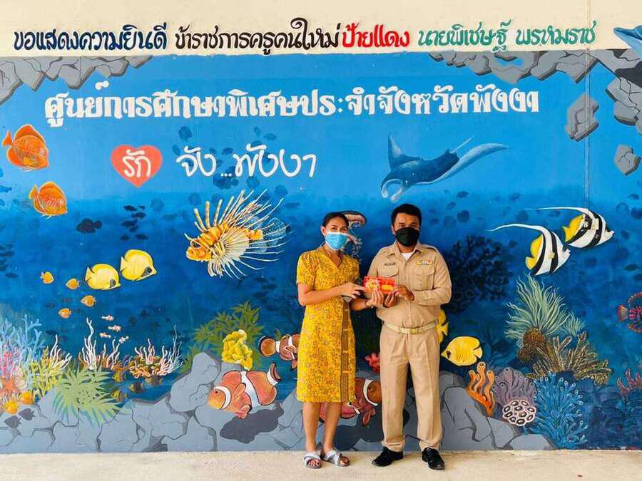 วันจันทร์ ที่ 27 ธันวาคม 2564 นำโดย นางลักษ์ตวรรณ ปานเพชร รองผู้อำนวยการรักษาการในตำแหน่งผู้อำนวยการศูนย์การศึกษาพิเศษประจำจังหวัดพังงา นางสาวอาภรณ์ ภู่ดอก รองผู้อำนวยการคณะครูและบุคลากรทางการศึกษา ศูนย์การศึกษาพิเศษประจำจังหวัดพังงา ร่วมแสดงความยินดีกับ นายพิเชษฐ์ พรหมราช เนื่องจากผ่านการคัดเลือกบุคคลเพื่อบรรจุและแต่งตั้งเข้ารับราชการเป็นข้าราชการครู และบุคลากรทางการศึกษา ตำแหน่งครูผู้ช่วย กรณีที่มีความจำเป็นพิเศษหรือมีเหตุพิเศษ สังกัดสำนักบริหารงานการศึกษาพิเศษ สำนักงานคณะกรรมการการศึกษาขั้นพื้นฐาน พ.ศ. 2564 S:0