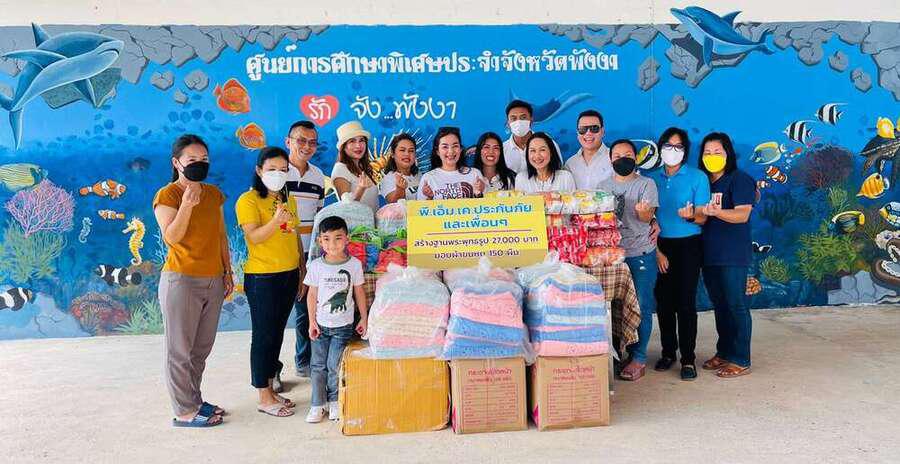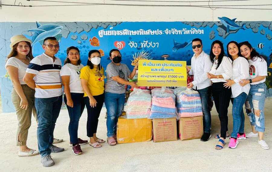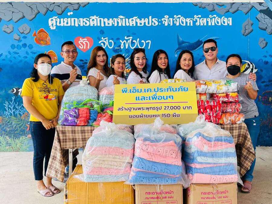 วันเสาร์ ที่ 29 มกราคม 2565 นายสิริกร รักชาติ และเพื่อนๆ ร่วมกับ พี.เอ็ม.เค.ประกันภัยบริจาคเงินเพื่อสร้างฐานพระพุทธรูป จำนวนเงิน 27,000 บาท ปันรักปันสุข ด้วยการมอบขนม และผ้าขนหนู จำนวน 150 ผืน ให้กับผู้เรียนของศูนย์การศึกษาพิเศษประจำจังหวัดพังงาในนามของผู้เรียน ผู้บริหาร คณะครูและบุคลากรทางการศึกษาศูนย์การศึกษาพิเศษประจำจังหวัดพังงา ขอขอบพระคุณท่านเป็นอย่างสูง S:0