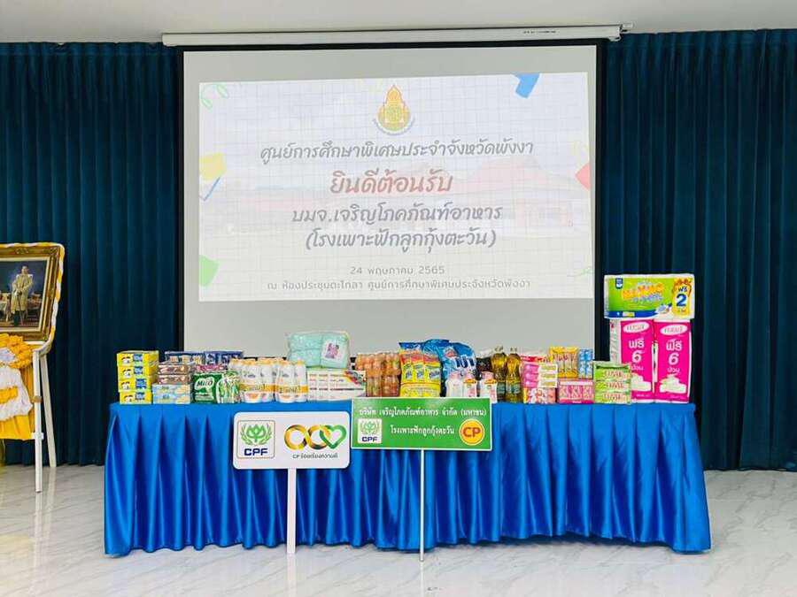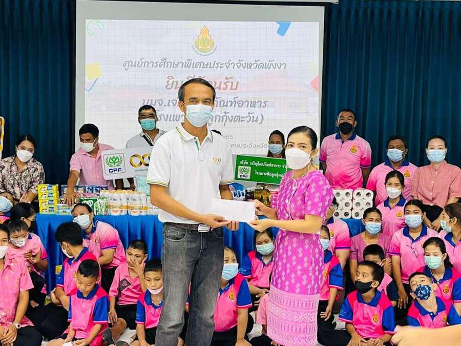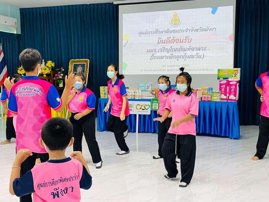 วันอังคาร ที่ 24 พฤษภาคม 2565 บมจ.เจริญโคกภัณฑ์อาหาร (โรงเพาะฟักลูกกุ้งตะวัน) ปันรักปันสุขด้วยการ มอบของใช้ และเงินเพื่อสนับสนุนในการจัดกิจกรรมการเรียนการสอนของผู้เรียน พร้อมทั้งร่วมทำกิจกรรมกับน้องๆ ในนามของผู้บริหาร คณะครู ผู้เรียน ผู้ปกครอง ศูนย์การศึกษาพิเศษประจำจังหวัดพังงา ขอขอบคุณท่านเป็นอย่างสูง S:0