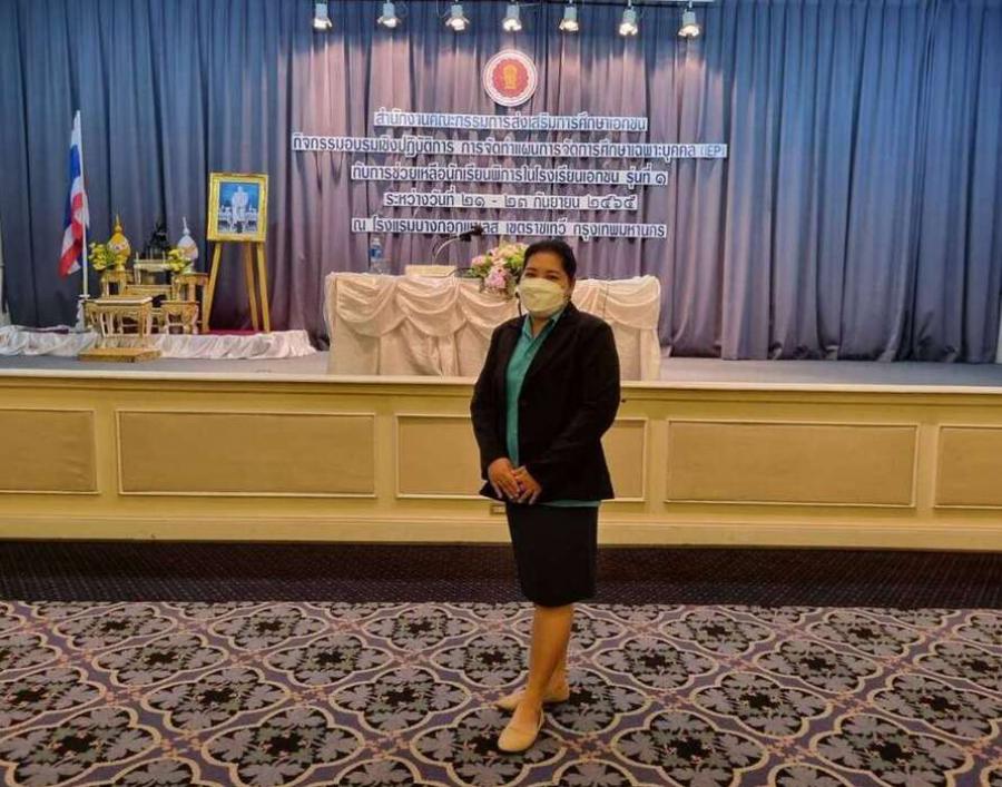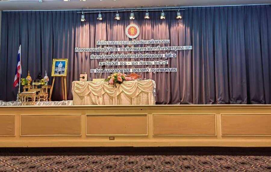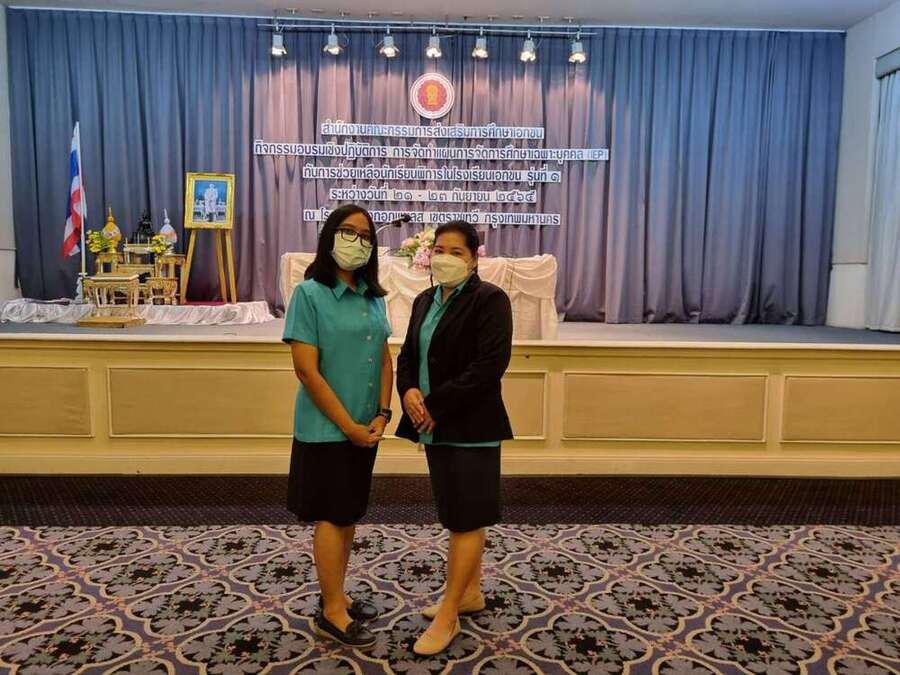 นางลักษ์ตวรรณ ปานเพชร รองผู้อำนวยการ รักษาการในตำแหน่งผู้อำนวยการศูนย์การศึกษาพิเศษประจำจังหวัดพังงา มอบหมายให้นางสาวมนัสนันท์ ม่วงแสง และนางอุทัยวรรณ ศรีสกุล ครูศูนย์การศึกษาพิเศษประจำจังหวัดพังงา เข้าร่วมอบรมเชิงปฏิบัติการการจัดทำแผนการจัดการศึกษาเฉพาะบุคคล (IEP) กับการช่วยเหลือนักเรียนในโรงเรียนเอกชน รุ่นที่ 1 ระหว่างวันที่ 21-23 กันยายน พ.ศ. 2565 ณ โรงแรมบางกอกพาเลส กรุงเทพมหานคร S:0