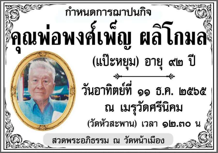 ร่วมแสดงความเสียใจกับ นายกฤษติยา ผลิโกมล นายกองค์การบริหารส่วนตำบลบางไทร คณะกรรมการสถานศึกษาขั้นพื้นฐานศูนย์การศึกษาพิเศษประจำจังหวัดพังงา กับการสูญเสียคุณพ่อ