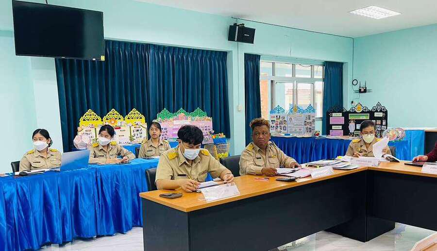 วันจันทร์ ที่ 19 2565 นางสาวอาภรณ์ ภู่ดอก รองผู้อำนวยการรักษาการในตำแหน่งผู้อำนวยการศูนย์การศึกษาพิเศษ ประจำจังหวัดพังงา พร้อมด้วยคณะกรรมการ ต้อนรับนายจักรพงษ์ เอียบสกุล ผู้อำนวยการโรงเรียนราชประชานุเคราะห์ 35 จังหวัดพังงา กรรมการในการประเมินการเตรียมความพร้อมและพัฒนาอย่างเข้ม ตำแหน่งครูผู้ช่วย ครั้งที่ 1 ของ นายชลธิศ หนูจันทร์แก้ว นางสาวหิรัญญา หลุ่ยจิ๋ว นางสาวชนมน คูนิอาจ และนางสาวอำนวยพร ด้วงอ่อม ณ ห้องประชุมตะโกลา ศูนย์การศึกษาพิเศษประจำจังหวัดพังงา S:0