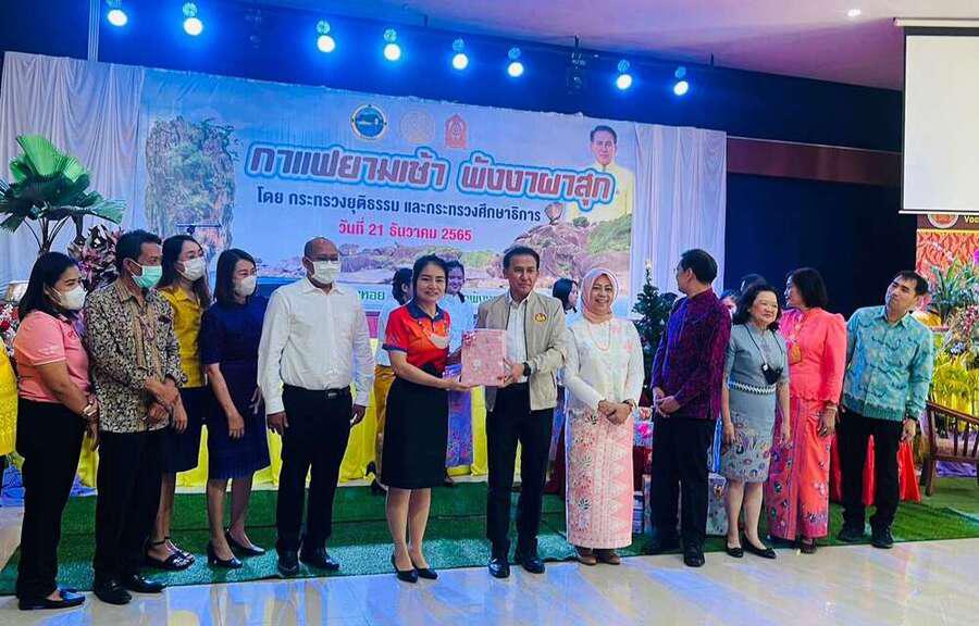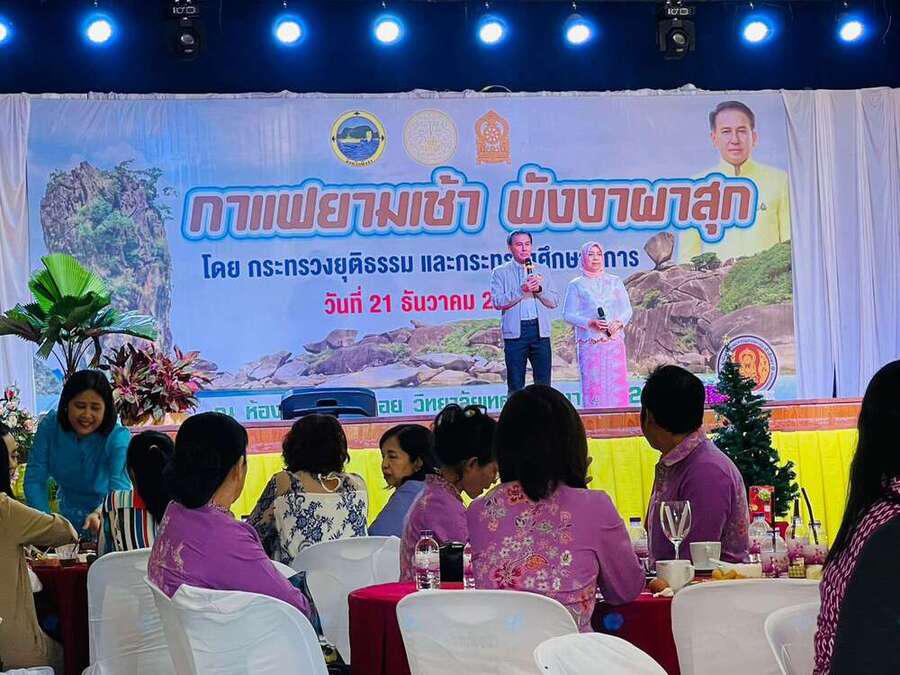 วันพุธ ที่ 21 2565 นางสาวอาภรณ์ ภู่ดอก รองผู้อำนวยการรักษาการในตำแหน่งผู้อำนวยการศูนย์การศึกษาพิเศษประจำจังหวัดพังงา พร้อมด้วยนางสาวกมลวรรณ เดชเจริญ นางสาวกรวิการ์ ก๋าสุข ร่วมกิจกรรมแลกเปลี่ยนเรียนรู้ ?กาแฟยามเช้า พังงาผาสุก? ซึ่งเป็นกิจกรรมที่จังหวัดพังงากำหนดจัดขึ้นเดือนละ 1 ครั้ง เพื่อให้หัวหน้าส่วนราชการ หัวหน้าหน่วยงาน รัฐวิสาหกิจ ผู้บริหารสถานศึกษา ผู้บริหารองค์กรปกครองส่วนท้องถิ่น และองค์กรภาคเอกชน ได้พบปะและแลกเปลี่ยนความคิด สานสัมพันธ์ สร้างความร่วมมือในการขับเคลื่อนจังหวัดพังงาซึ่งในครั้งนี้มีหน่วยงานกระทรวงศึกษาธิการร่วมกับกระทรวงยุติธรรม เป็นเจ้าภาพจัดกิจกรรม โดยนายเอกรัฐ หลีเส็น ผู้ว่าราชการจังหวัดพังงา พบปะพูดคุยแจ้งกิจกรรมต่างๆของจังหวัด และมีกิจกรรมแนะนำหน่วยงานเจ้าภาพด้วย VTR มีการเล่นเกม มอบของของขวัญปีใหม่ และการมอบหมวกกันน๊อค โครงการ ?ผู้ว่าสวมหมวกให้น้อง?ณ วิทยาลัยเทคนิคพังงา เขต 2 อำเภอเมือง จังหวัดพังงา S:0