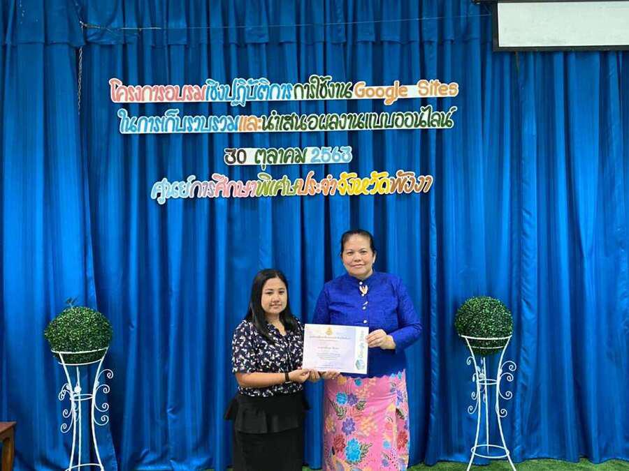 วันศุกร์ ที่ 30 ตุลาคม 2563 ศูนย์การศึกษาพิเศษประจำจังหวัดพังงา นำโดยนางเดือนวดี เสนชู ผู้อำนวยการศูนย์การศึกษาพิเศษประจำจังหวัดพังงา และวิทยากรภายในองค์กร จัดอบรมเชิงปฏิบัติการขยายผลเกี่ยวกับการใช้งาน Google Sites ให้กับคณะครูของศูนย์การศึกษาพิเศษประจำจังหวัดพังงา S:0