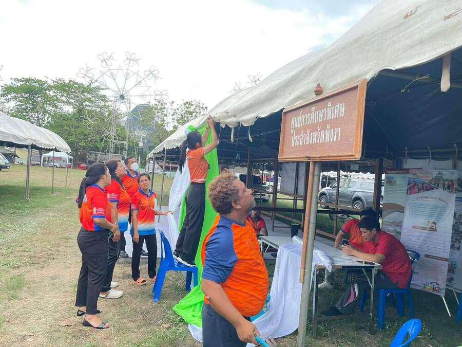 นางสาวอาภรณ์ ภู่ดอก รองผู้อำนวยการรักษาการในตำแหน่งผู้อำนวยการศูนย์การศึกษาพิเศษประจำจังหวัดพังงา มอบหมายให้บุคลากรทางการศึกษาศูนย์การศึกษาพิเศษประจำจังหวัดพังงา ร่วมออกร้านจัดนิทรรศการผลงานของนักเรียน แต่ละหน่วยบริการ ในงานกาชาดและงานประจำปี 2566 จังหวัดพังงา ?เสน่ห์กราภูงาเมืองพังงาผาสุก? ระหว่างวันที่ 17-26 กุมภาพันธ์ 2566 ณ บริเวณสนามหน้าศาลากลางจังหวัดพังงา(หลังเก่า) S:0