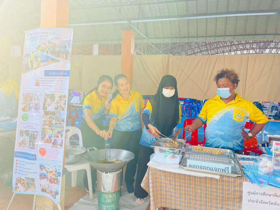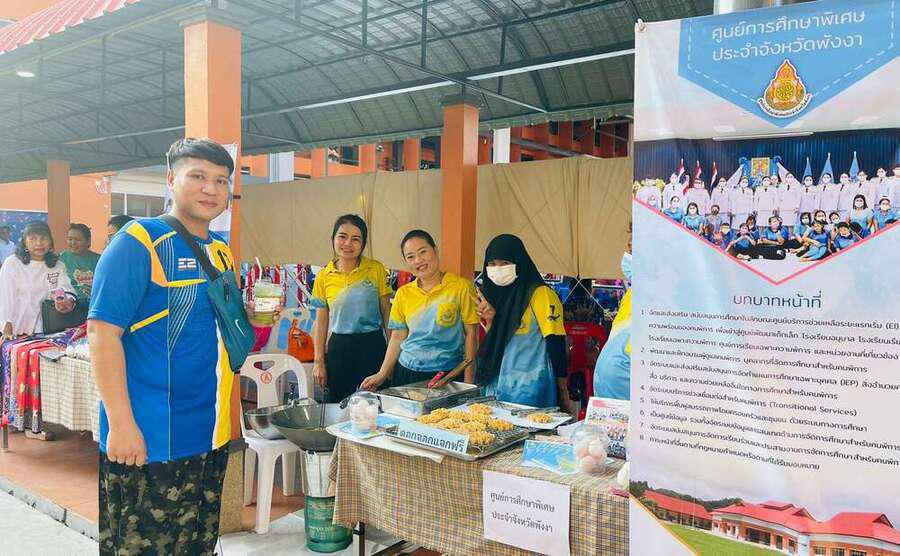วันศุกร์ ที่ 24 มีนาคม 2566 นางสาวอาภรณ์ ภู่ดอก รองผู้อำนวยการรักษาการในตำแหน่งผู้อำนวยการ ศูนย์การศึกษาพิเศษประจำจังหวัดพังงา พร้อมด้วยคณะครู และบุคลากรทางการศึกษาศูนย์การศึกษาพิเศษประจำจังหวัดพังงา เข้าร่วมแสดงนิทรรศการผลงานนักเรียนและประชาสัมพันธ์กิจกรรมของศูนย์การศึกษาพิเศษประจำจังหวัดพังงาในงานพี่ร้องให้น้องได้เรียนตอน พังงาผาสุก ณ โรงเรียนเทศบาลบ้านย่านยาวในครั้งนี้ S:0