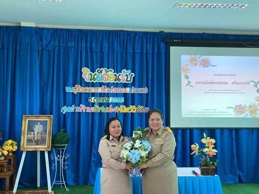 วันจันทร์ ที่ ๕ ตุลาคม ๒๕๖๓ ผู้อำนวยการเดือนวดี เสนชู พร้อมด้วยคณะครูศูนย์การศึกษาพิเศษประจำจังหวัดพังงา ร่วมกันต้อนรับ ผู้อำนวยการสนอง เสลาคุณ และคณะครูจากโรงเรียนศึกษาสงเคราะห์สุราษฎร์ธานี ที่เดินทางมาศึกษาดูงานพร้อมส่ง นางลักษ์ตวรรณ ปานเพชร ดำรงตำแหน่งรองผู้อำนวยการศูนย์การศึกษาพิเศษประจำจังหวัดพังงา S:0