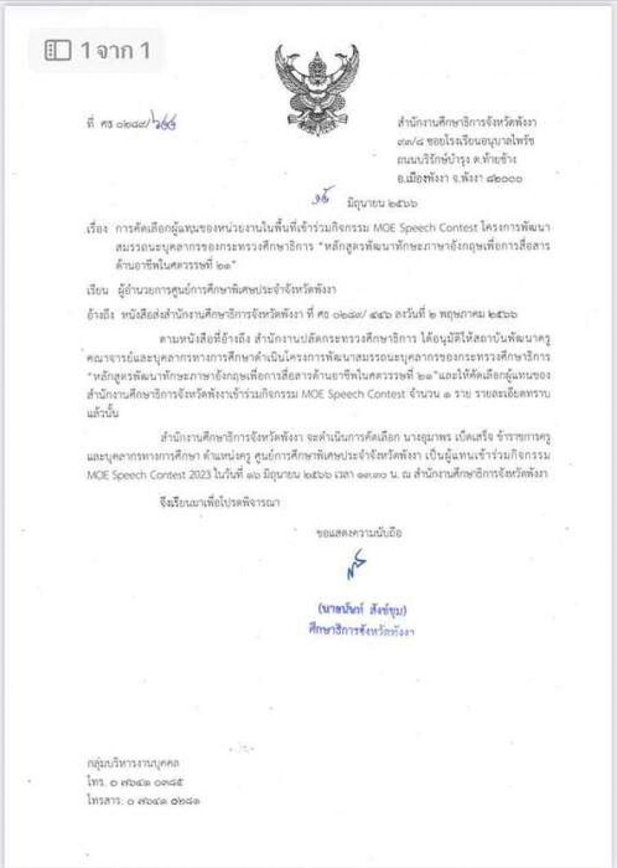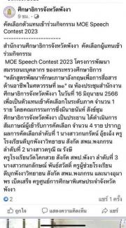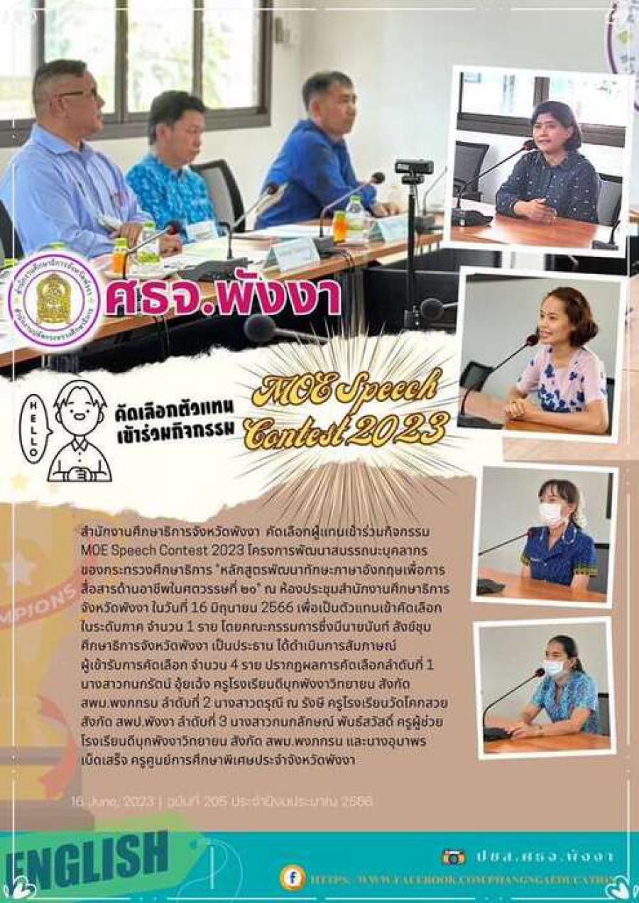 ร่วมคัดเลือกผู้แทน กิจกรรม MOE Speech Contest 2023 โครงการพัฒนาสมรรถนะบุคลากร ของกระทรวงศึกษาธิการจังหวัดพังงา