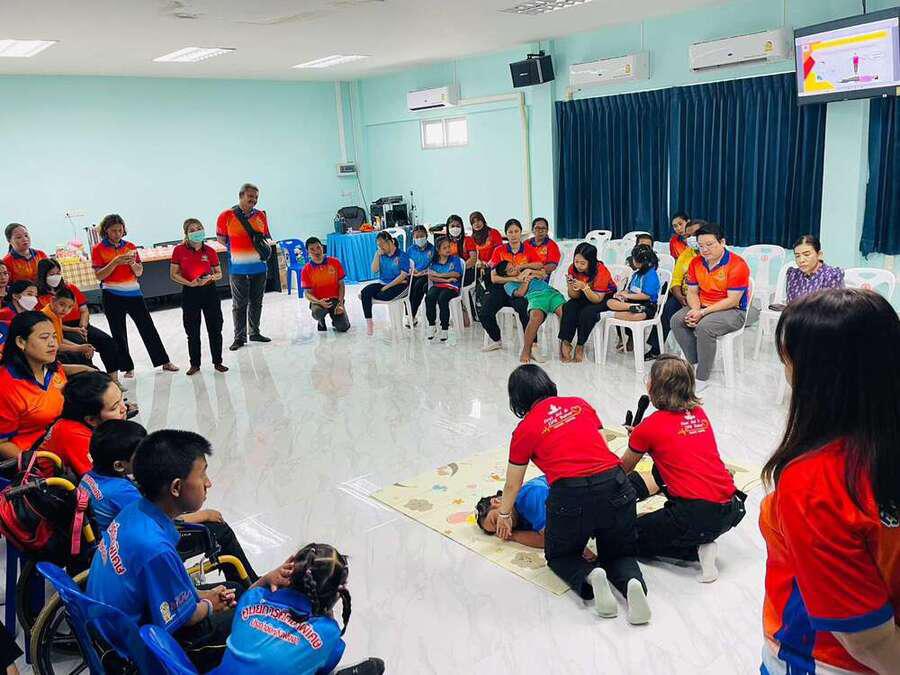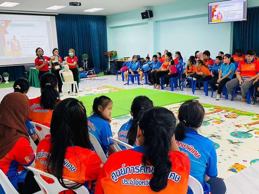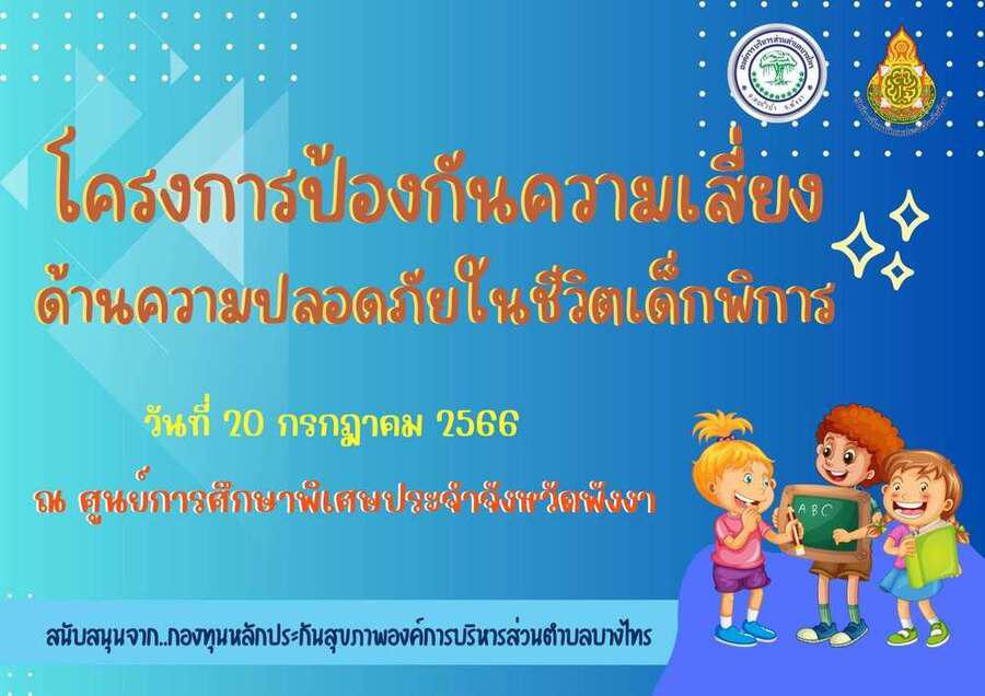 วันพฤหัสบดี ที่ 20 กรกฎาคม 2566 นางสาวอาภรณ์ ภู่ดอก รองผู้อำนวยการรักษาการในตำแหน่งผู้อำนวยการศูนย์การศึกษาพิเศษประจำจังหวัดพังงา คณะครูบุคลากรทางการศึกษา จัดโครงการป้องกันความเสี่ยงด้านความปลอดภัยในชีวิตเด็กพิการ ซึ่งสนับสนุนและส่งเสริม ในการจัดกิจกรรมโดยกองทุนหลักประกันสุขภาพองค์การบริหารส่วนตำบลบางไทร ได้รับความอนุเคราะห์จากหน่วยกู้ชีพโรงพยาบาลตะกั่วป่า ณ ห้องประชุมตะโกลา ศูนย์การศึกษาพิเศษประจำจังหวัดพังงา S:0
