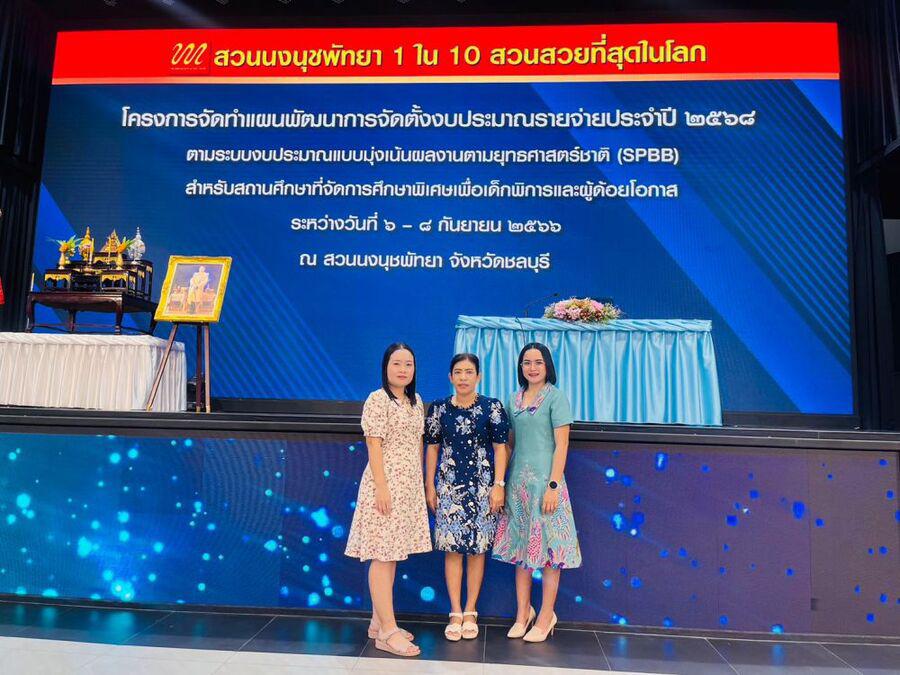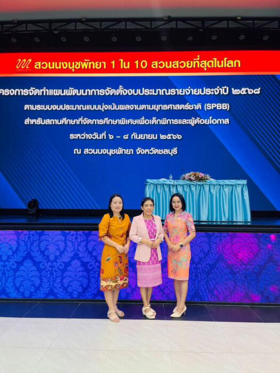 วันที่ 6-8 กันยายน 2566 นางสาวอาภรณ์ ภู่ดอก รองผู้อำนวยการรักษาการในตำแหน่งผู้อำนวยการศูนย์การศึกษาพิเศษประจำจังหวัดพังงา นางสาวจิดาภา ฤทธิ์สาคร และนางสาวรุ่งทิวา ศิริ ครูศูนย์การศึกษาพิเศษประจำจังหวัดพังงา ร่วมประชุมโครงการจัดทำแผนพัฒนา การจัดตั้งงบประมาณรายจ่ายประจำปี 2568 ตามระบบงบประมาณแบบมุ่งเน้นผลงานตามยุทธศาสตร์ชาติ (SPBB) สำหรับสถานศึกษาพิเศษเพื่อเด็กพิการและผู้ด้อยโอกาส ณ สวนนงนุชพัทยา จังหวัดชลบุรี S:0