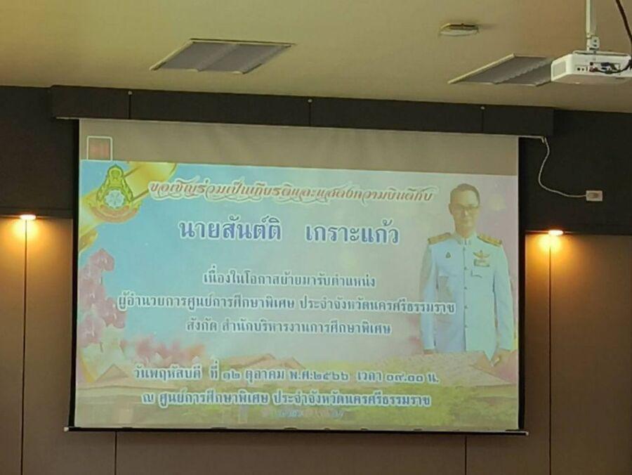 แสดงความยินดีกับ นายสันต์ติ เกราะแก้ว เนื่องในโอกาสย้ายมารับตำแหน่ง ผู้อำนวยการศูนย์การศึกษาพิเศษประจำจังหวัดนครศรีธรรมราช