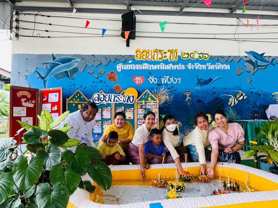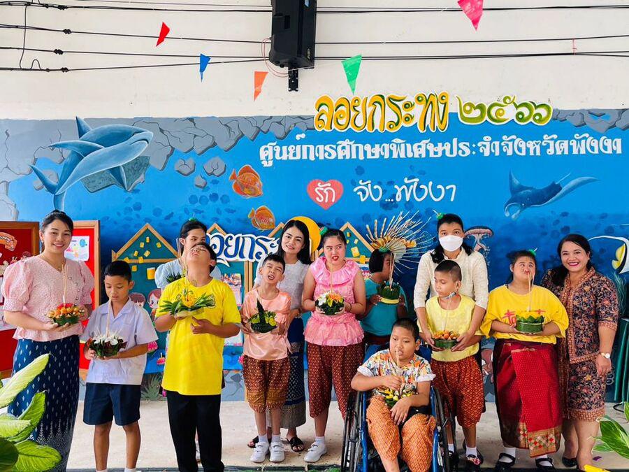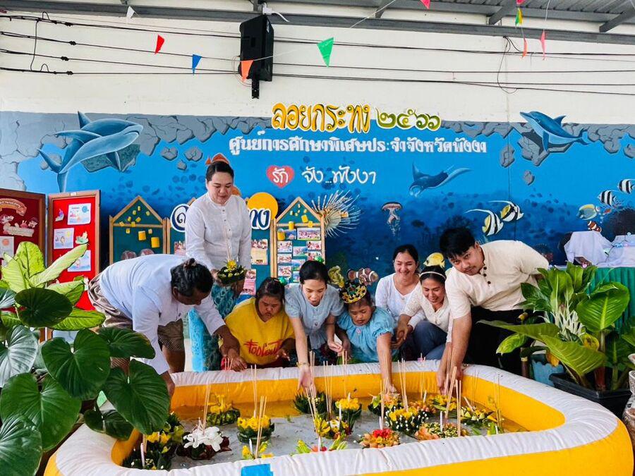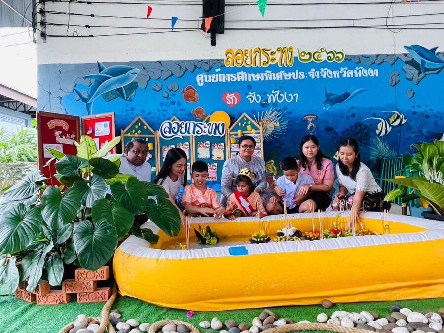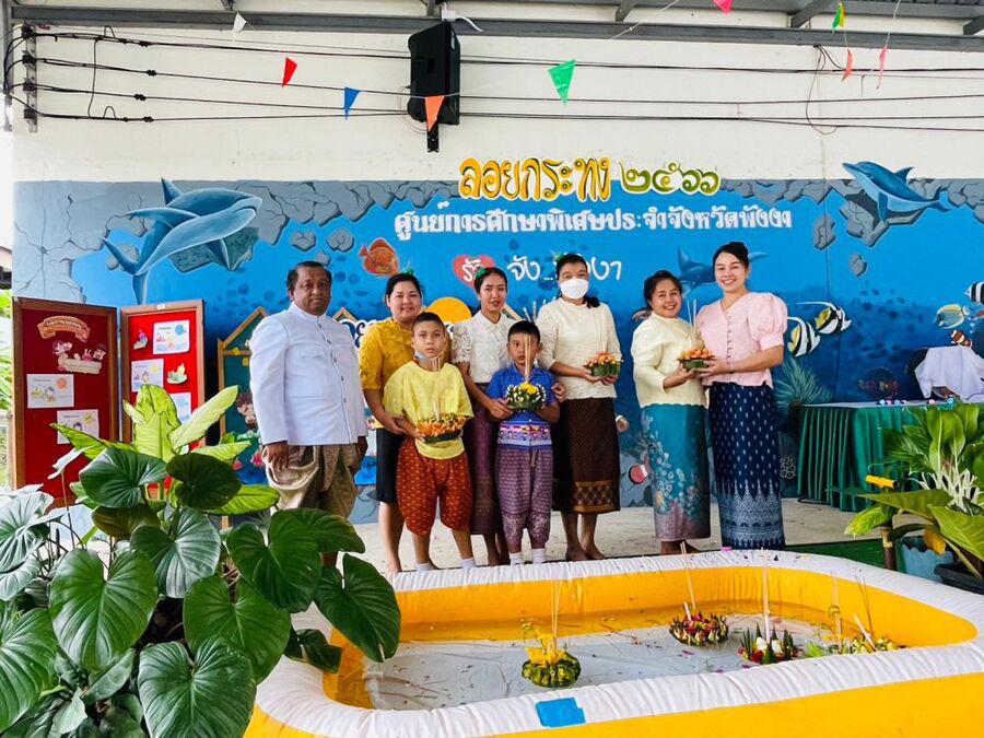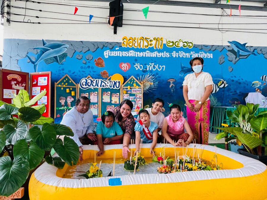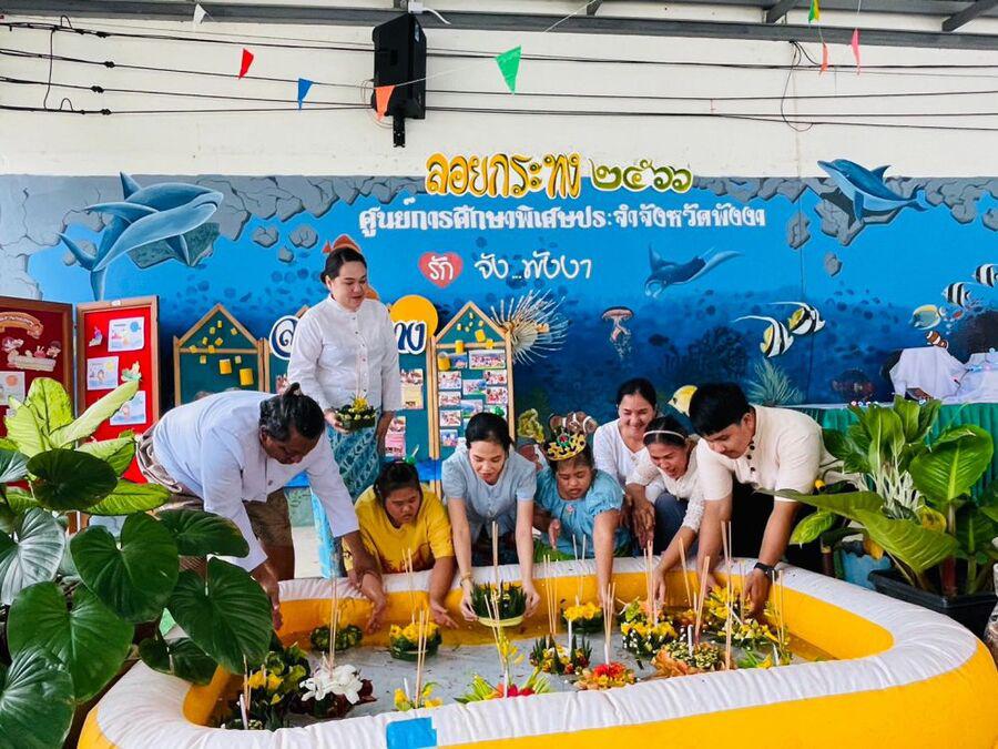 วันจันทร์ ที่ 27 พฤศจิกายน 2566 นางสาวจิตรนุช โคตรดี ผู้อำนวยการศูนย์การศึกษาพิเศษประจำจังหวัดพังงา มอบหมายให้ นายเอกมลรัตน์ จันทวงศ์ หัวหน้ากลุ่มบริงานบุคคล พร้อมด้วยคณะครูและบุคลากรทางการศึกษา จัดกิจกรรมวันลอยกระทง ประจำปีการศึกษา 2566 เพื่อส่งเสริมให้ผู้เรียนได้มีส่วนร่วมในการอนุรักษ์ และสืบสานขนบธรรมเนียมประเพณีอันดีงามของไทย อีกทั้งยังเป็นการปลูกฝังจิตสำนึกให้ผู้เรียนรู้จักรักษาและหวงแหนคุณค่าของความเป็นไทยให้คงอยู่สืบไป S:0
