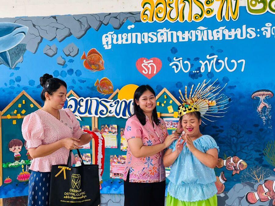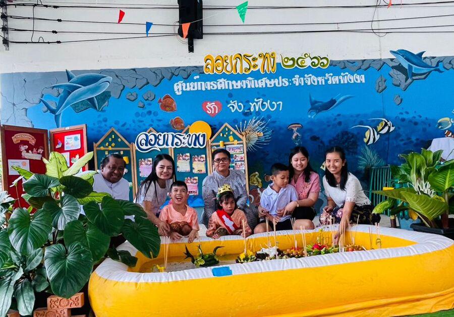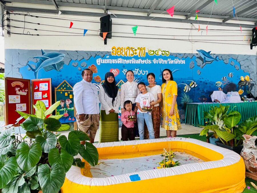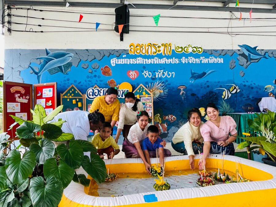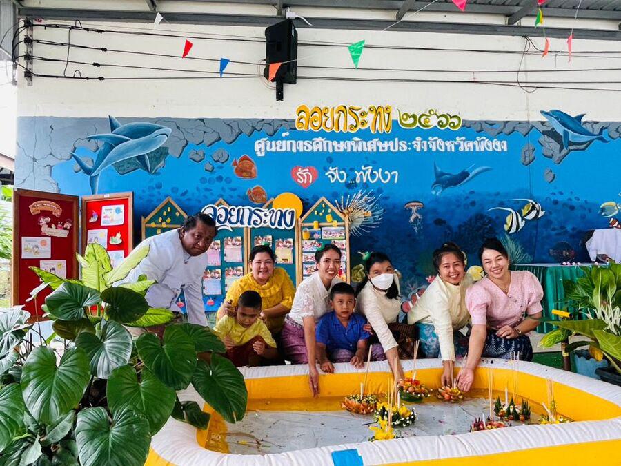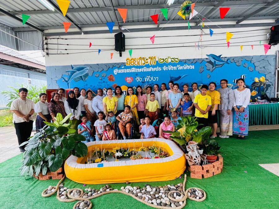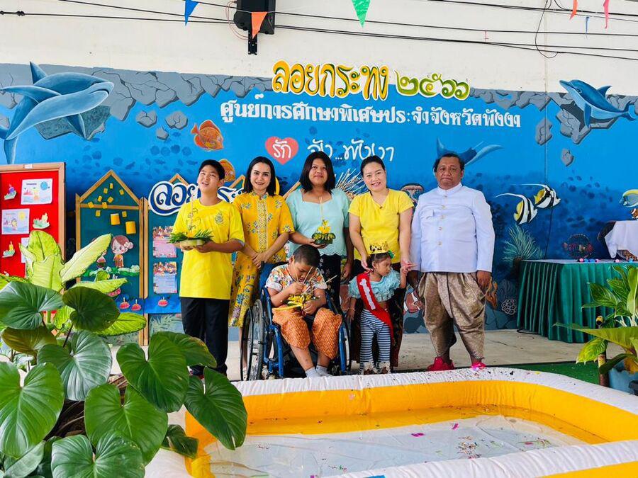 วันจันทร์ ที่ 27 พฤศจิกายน 2566 นางสาวจิตรนุช โคตรดี ผู้อำนวยการศูนย์การศึกษาพิเศษประจำจังหวัดพังงา มอบหมายให้ นายเอกมลรัตน์ จันทวงศ์ หัวหน้ากลุ่มบริงานบุคคล พร้อมด้วยคณะครูและบุคลากรทางการศึกษา จัดกิจกรรมวันลอยกระทง ประจำปีการศึกษา 2566 เพื่อส่งเสริมให้ผู้เรียนได้มีส่วนร่วมในการอนุรักษ์ และสืบสานขนบธรรมเนียมประเพณีอันดีงามของไทย อีกทั้งยังเป็นการปลูกฝังจิตสำนึกให้ผู้เรียนรู้จักรักษาและหวงแหนคุณค่าของความเป็นไทยให้คงอยู่สืบไป S:0