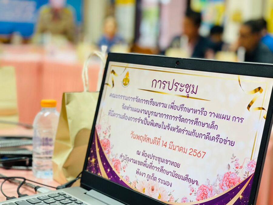 วันพฤหัสบดี ที่ 14 มีนาคม 2567 นางสาวจิตรนุช โคตรดี ผู้อำนวยการศูนย์การศึกษาพิเศษประจำจังหวัดพังงา นางสาวอาภรณ์ ภู่ดอก รองผู้อำนวยการ พร้อมด้วยคณะครูผู้รับผิดชอบงานเรียนรวมศูนย์การศึกษาพิเศษประจำจังหวัดพังงา จัดประชุมคณะกรรมการจัดการเรียนรวม เพื่อปรึกษาหารือ วางแผน การจัดทำแผนงานบูรณาการ การจัดการศึกษาเด็กที่มีความต้องการจำเป็นพิเศษในจังหวัดร่วมกับภาคีเครือข่าย ครั้งที่1/2567 ณ ห้องประชุมเขาทอย จังหวัดพังงา S:0