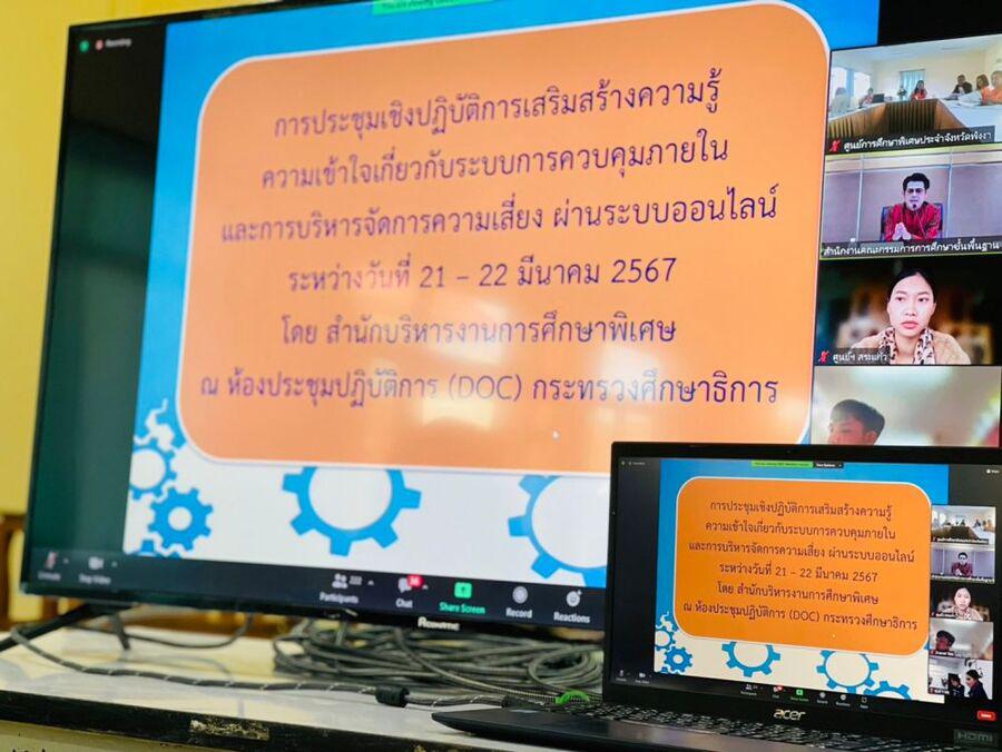 ระหว่างวันที่ 21-22 มีนาคม 2567 นางสาวจิตรนุช โคตรดี ผู้อำนวยการศูนย์การศึกษาพิเศษประจำจังหวัดพังงา นายพงษ์พิทักษ์ ศรีสุขคำ รองผู้อำนวยการ พร้อมด้วยคณะครูศูนย์การศึกษาพิเศษประจำจังหวัดพังงา เข้าร่วมประชุมเชิงปฏิบัติการเสริมสร้างความรู้ ความเข้าใจเกี่ยวกับระบบการควบคุมภายในและบริหารความเสี่ยง ผ่านสื่ออิเล็กทรอนิกส์โดยระบบแอพพลิเคชั่น ZOOM ณ ห้องธารา ศูนย์การศึกษาพิเศษ ประจำจังหวัดพังงา S:0
