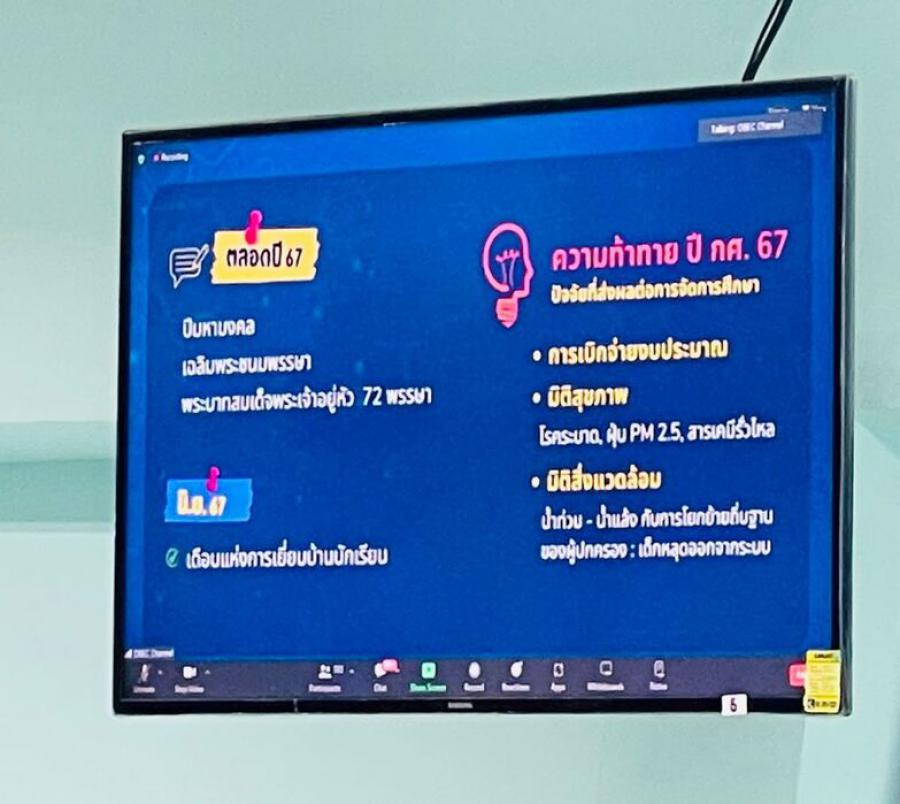 วันอังคาร ที่ 23 เมษายน 2567 นางสาวจิตรนุช โคตรดี ผู้อำนวยการศูนย์การศึกษาพิเศษ ประจำจังหวัดพังงา นางสาวอาภรณ์ ภู่ดอก นายพงษ์พิทักษ์ ศรีสุขคำ รองผู้อำนวยการ พร้อมด้วยคณะครูและบุคลากรทางการศึกษา ศูนย์การศึกษาพิเศษ ประจำจังหวัดพังงา ร่วมประชุมรับมอบนโยบายการเตรียมความพร้อม ก่อนเปิดภาคเรียน ประจำปีการศึกษา 2567 โดย คณะรัฐมนตรีกระทรวงศึกษาธิการ ผ่านสื่ออิเล็กทรอนิกส์โดยระบบแอพพลิเคชั่น ZOOM ณ ห้องประชุมตะโกลาศูนย์การศึกษาพิเศษ ประจำจังหวัดพังงา S:0