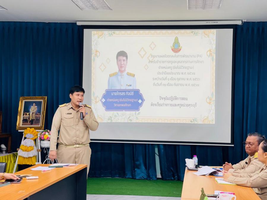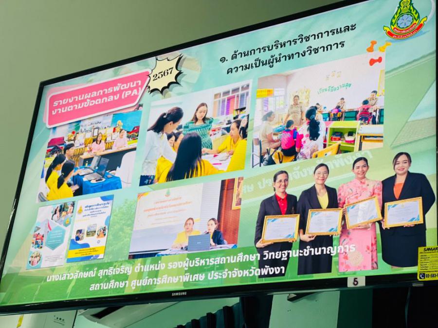 ระหว่างวันที่ 7-8 ตุลาคม 2567 นางสาวจิตรนุช โคตรดี ผู้อำนวยการศูนย์การศึกษาพิเศษ ประจำจังหวัดพังงา นายพงษ์พิทักษ์ ศรีสุขคำและนางเสาวลักษณ์ สุทธิเจริญ รองผู้อำนวยการ พร้อมด้วยคณะกรรมการประเมินรายงานผลการพัฒนางานตามข้อตกลง (PA) ของข้าราชการครูและบุคลากรทางการศึกษา ประจำปีงบประมาณ 2567 ณ ห้องประชุม ตะโกลา ศูนย์การศึกษาพิเศษ ประจำจังหวัดพังงา S:0