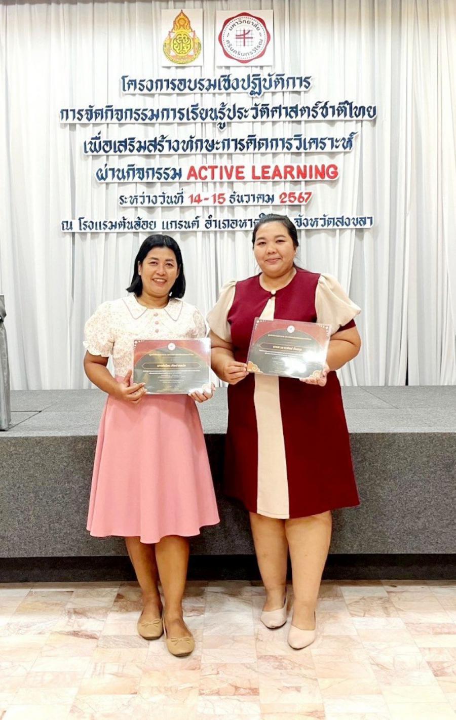 ระหว่างวันที่14 - 15 ธันวาคม 2567 นางสาวจิตรนุช โคตรดี ผู้อำนวยการศูนย์การศึกษาพิเศษ ประจำจังหวัดพังงามอบหมายให้ นางสาวธาราทิพย์ ตั้นสกุล และนางสาวพัชรีพร เกิดปากพนัง ครูศูนย์การศึกษาพิเศษ ประจำจังหวัดพังงา เข้าร่วมอบรมเชิงปฏิบัติการเรื่อง?การจัดกิจกรรมการเรียนรู้ประวัติศาสตร์ชาติไทย เพื่อเสริมสร้างทักษะการคิดวิเคราะห์ ผ่านกิจกรรม ACTIVE LEARNING? ณ โรงแรมต้นอ้อย แกรนด์ อำเภอหาดใหญ่ จังหวัดสงขลา S:0